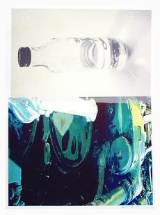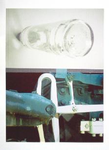 Photos shot in an antique trainyard combine with glass bottles to extend the theme of translucency set